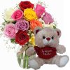 Arranjo no Vaso P com Astromélias Coloridas+Urso 25cm “Eu Te Amo”