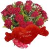 Buquê 12 Rosas Vermelhas + Cachorro Rosa 23cm “Amo Você”