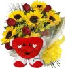 Buquê 12 Rosas Vermelhas e Rosa e Margaridas+Coração Grande “Eu Te Amo” 75×42