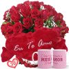 Buquê 36 Rosas cor Rosa +Coração Grande “Eu Te Amo” 75×42+Caneca Rosa “Como é Grande o meu amor”